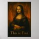 Eine unglaublich witzig Mona Lisa Parodie trifft auf das klassische "This is Fine" Meme. Mit Flammen im Hintergrund und einem ruhigen Lächeln verbindet dieses lustige Kunstwerk die Kunst der Renaissance mit der Kultur des Internet-Meme und macht es zu einem perfekten Mashup aus Spaß, Chaos und ikonischen Bildern.