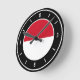 Monaco Flag Elegante Uhr mit der Fahne Monaco in der Mitte und schöne weiße Uhrennummern am Uhrenrand. Ein zauberhafter schwarzer Hintergrund mit weißen ovalen Elementen vervollständigt das Design und betont die Eleganz. Die wunderschöne Kombination aus Schwarz und Weiß mit der geschickten Integration der nationalen Flaggenfarben machen diese Uhr zum perfekten Geschenk und zum großartigen Stück an der Wand. © 2022 CountriesOfTheWorld