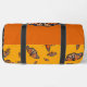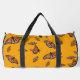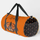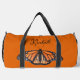 Mädchen duffle Tasche mit monarchischem Schmetterlingsmuster und Platz für ihren Namen. Die Farben sind orange, gold und schwarz. Der Name ist in schwarzem Skript über einem großen Schmetterlingbild. Ideal, um mit den Großeltern zu einem Erlebnis zu kommen oder sich zu entspannen. Diese Tasche kommt auch in einer kleineren Größe.