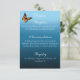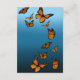 Elegante Monarchen-Schmetterlinge in Orange vor einem blauen, omberfarbenen Hintergrund schaffen ein romantisches und naturlich inspiriertes Design. Ideal für Hochzeiten im Freien, im Garten oder im Schmetterlingstheater.