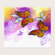 Orange, detailed monarch butterflies on light, purple, picture, painted background.