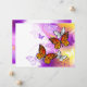 Orange, detailed monarch butterflies on light, purple, picture, painted background.
