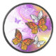 Orange, detailed monarch butterflies on light, purple, picture, painted background.