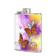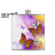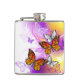 Orange, detailed monarch butterflies on light, purple, picture, painted background.