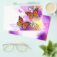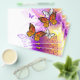 Orange, detailed monarch butterflies on light, purple, picture, painted background.