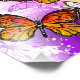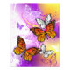 Orange, detailed monarch butterflies on light, purple, picture, painted background.