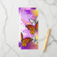 Orange, detailed monarch butterflies on light, purple, picture, painted background.