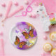 Orange, detailed monarch butterflies on light, purple, picture, painted background.