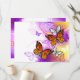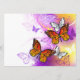Orange, detailed monarch butterflies on light, purple, picture, painted background.