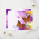 Orange, detailed monarch butterflies on light, purple, picture, painted background.