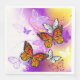 Orange, detailed monarch butterflies on light, purple, picture, painted background.