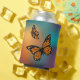 Ein schönes Bild von zwei Monarchen Schmetterlingen auf einem farbenfrohen Hintergrund.