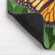 Der prächtige Monarch zeigt sich in seiner wunderschönen Form inmitten einer roten und gelben Lantana-Pflanze.