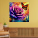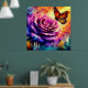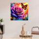 Monarch Butterfly auf Lila Rose bei Sonnenuntergan Poster