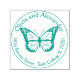 Fügen Sie Ihrem Hochzeitsbrief einen dekorativen Flair hinzu und danken Ihnen Notizen mit einer Briefmarke, die Sie nach der Hochzeitszeit verwenden können. Eine hübsche Schmetterling-Rücksendeadresse, die selbst eine Briefmarke färbt. Fügen Sie Ihren Namen und Ihre Adresse in den Kreis mehrere Farbauswahl Tinte. Eine nachdenkliche Hochzeitsgeschenkidee.