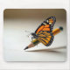 A vibrant monarch butterfly gracefully resting on a pencil, magically suspended above a blank sheet of paper, ready to inspire creativity and ideas