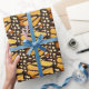 Dieses Verpackungspapier kennzeichnet ein abstraktes Muster eines reizenden Flügels des Monarch-Schmetterlinges (Danaus plexippus) in den Farben von Orange, von Gelbem, Gold, Schwarzes, Braun und Weiß.