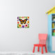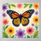 This vibrant poster features a monarch butterfly centered among colorful hand-drawn daisies and wildflowers, bright garden illustration bursting with warm orange, purple, pink hues.
