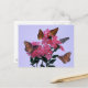 Monarchschmetterlinge auf kleinen rosa Blüten auf blauem Hintergrund
