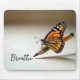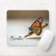 Ein lebhafter Monarchfalter ruht elegant auf einem Bleistift und schwebt magisch über einem leeren Blatt Papier mit einem inspirierenden Wort.
