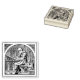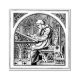 Mönch am mittelalterlichen Schreibtisch Gummistempel