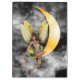 Eine schöne Fee, die auf dem orange Mond unter den Wolken zerstreuen feenhaften Staub sitzt. Verfügbar auf mehrfachen Hintergrundfarben für die meisten Produkte.