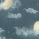 Träumende Monddarstellungen in verschiedenen Phasen, eingebettet in wirbelnde Wolken.