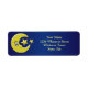 Rücksendeaufkleber Mond und Sternendesign. Sie können dieses Adressetikett mit jedem beliebigen Text Ihrer Wahl anpassen. Wenn Sie Hilfe bei der Anpassung benötigen, kontaktieren Sie uns über den Link auf dieser Seite. Moon und Sterne Design kehren Adresse Etikett.