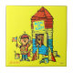 Künstler: Lee deGroot | Junge steht tragender fishbowl Sturzhelm nahe bei selbst gemachter Rakete mit Hund nach innen