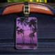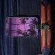 Palmen mit Mond in einem hellen rosa und lila Himmel, denkend über ruhiges Wasser nach. | EntwurfPics/Ron Dahlquist | AssetID: 124811283