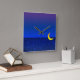 Eine Vintage Kunst, die eine sternenförmige Nacht mit einem leuchtenden Halbmond vor dem Hintergrund von Blues und Veilchen verziert. Klicken Sie auf Anpassen, um Ihren Namen oder Ihre Nachricht hinzuzufügen.