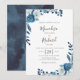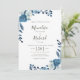 blaues Hochzeitsdesign mit Aquarellblau-Weiß-Blume. Text und Farben können personalisiert sein.