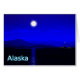 Moonrise in der Innenstadt von Alaska. Berge in der Ferne und ein Fischerboot fährt nach Norden. Es erscheint auch das Textlesen "Alaska".