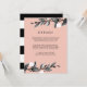 Diese elegante botanische Gästekarte, die sich mit der Blumenzellensammlung von Mondlicht abstimmt, zeichnet sich durch einen Zweig von Aquarellfarben-lackierten Blume in Rosa, Grau und Schwarz aus, die Ihren Wunschtext und Details auf Tonton-sur-ton-Rosa-Hintergrund vervollständigen. Karten werden in schwarz-weiße Streifen umgeschaltet. Modernes und elegantes Design für elegante Hochzeiten zu jeder Jahreszeit. Denken Sie an Details wie Hotelunterkünfte, Gruppennummern, Transport, Anfahrtsbeschreibung, Informationen zum Empfang und Ihre Hochzeitswebsite url. Sie können sogar eine Karte mit der Funktion Anpassen auf die Rückseite hochladen.