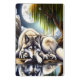 Unter einem leuchtenden Vollmond liegt ein majestätischer Wolf unter dem Schutz eines weinenden Weides. Die Szene spiegelt sich perfekt in der glänzenden Oberfläche eines ruhigen Sees wider und lädt zu einem Moment der Reflexion und Ruhe in der Umarmung der Nacht ein.