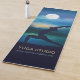 Yoga Fitness Studio / Meditation Instructor / Personal Trainer / Life Coach / Heiler / Reiki Master / Massage Therapy Yoga Mats Template - Elegante Yoga Meditation Pose / Mondsalutation // Crescent Mond Pose / Crescent Lunge Pose / Half Moon Pose (Ardha Chandrasana) / Surya Namaskar / Anjaneyasana Pose / Sun Salutation / Krieger 1 Yoga Pose / Chandra Namaskar / Silhouette am Seeufer bei Mondnacht.