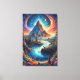 Dieses bezaubernde Kunstwerk zeigt einen hohen Berg mit einem Spiralgipfel unter einem hellen Nachthimmel, beleuchtet von einem großen Mond und kleineren Himmelskörpern. Ein ruhiger Fluss fließt von der Bergbasis und schlängelt sich durch den Vordergrund, wo ein Mensch angeln sieht. Umgeben von üppiger, farbenfroher Flora und faszinierenden Felsformationen verbindet dieses Stück wunderbar natürliche und fantastische Elemente, die ein Gefühl von Frieden und Wunder wecken.