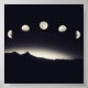 Ein umrissenes Gebirge mit 5 Mondphasen darüber.