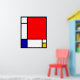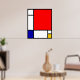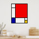 Mondrian Art: abstrakte Kunst des 20. Jahrhunderts mit drei Grundfarben (rot, blau und gelb), drei Grundwerten (schwarz, weiß und grau) und zwei Hauptrichtungen (horizontal und vertikal).