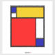 Mondrian Art: abstrakte Kunst des 20. Jahrhunderts mit drei Grundfarben (rot, blau und gelb), drei Grundwerten (schwarz, weiß und grau) und zwei Hauptrichtungen (horizontal und vertikal).