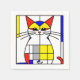 Abstrakte geometrische mondrische Darstellung einer Katze mit weißen, gelben, grauen und roten Quadraten und schwarzen Linien