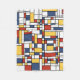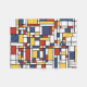 Neoplastische Kunst mit schwarzen, fetten Linien und roten, gelben und blauen Quadraten und Rechtecken.