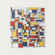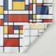 Neoplastische Kunst mit schwarzen, fetten Linien und roten, gelben und blauen Quadraten und Rechtecken.
