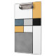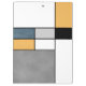 Abstrakte moderne Kunst mit bunten (marineblau, grau, schwarz, gelb, weiß) Rechtecken im mondrianischen Stil auf weißem Hintergrund
