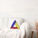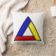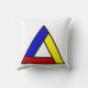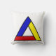 Elegantes Mondrian inspiriert abstraktes Dreieck in Blau, Gelb, Rot, auf weißem Kissen. Moderne, farbenfrohe abstrakte Kunst
