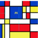 Mondrian inspirierte geometrischer Entwurfs-abstrakte Kunst in Blauem, im Rot und im Gelb. Sie können es mit Ihrem eigenen Monogramm personifizieren