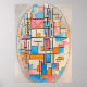 Mondrian-Komposition in Oval mit farbigen Flugzeug Poster