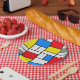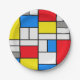 Mondrian Theme Elegant Plate mit berühmten mondrianischen Kunstwerken mit blau, rot, gelb, grau und weiß Thema. Drücken Sie "Lesen Sie mehr", um passende Servietten zu sehen!