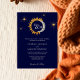 Feiern Sie die Gewerkschaft von zwei Soulen mit dieser bezaubernden Sun und Moon Elegant Monogram Wedding Einladung. Dieses Design vereint goldene Sonnenstrahlen mit einem silbernen Halbmond und symbolisiert Balance, Einheit und Harmonie. Der dunkelblaue Hintergrund mit sanften, glänzenden Sternen verleiht dem Paar eine himmlische Touch, während das Monogramm elegant präsentiert wird. Ideal für ein romantisches Hochzeitsthema, vereint diese Einladung Raffinesse und mystische Schönheit.