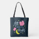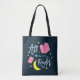 Dieses Büchertüte mit dem Überdruck enthält die Worte "All Night Reader", umgeben von gelben Mond und Sternen und rosa Büchern vor dunkelblauem Hintergrund. *Bitte beachten Sie, dass das Zazzle-Wasserzeichen, das in der Zoomvorschau angezeigt wird, NICHT auf dem gedruckten Endprodukt erscheint. © Bookish and Wonderful